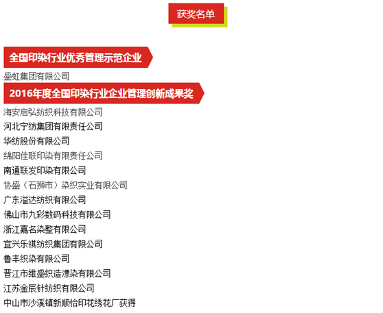 會上還對獲得“全國印染行業優秀管理示范企業”和2016年度“全國印染行業企業管理創新成果獎”的企業進行了表彰