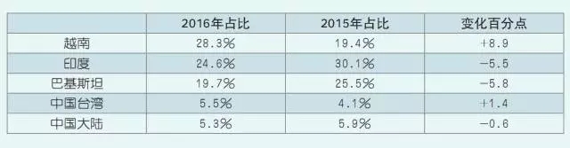 今年上半年,進口紗市場分布較往年也發生了變化,越南成為我國最大的棉紗線進口來源國,進口量占比提高8.9個百分點;而一直位于進口紗來源第一大市場的巴基斯坦跌落至第三位,印度保持第二位。