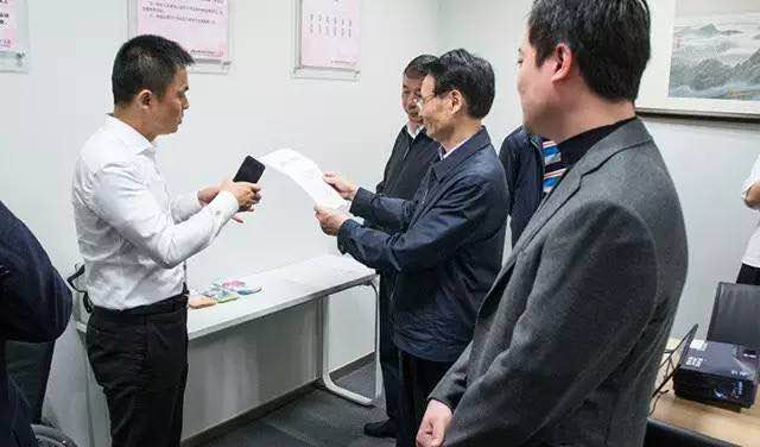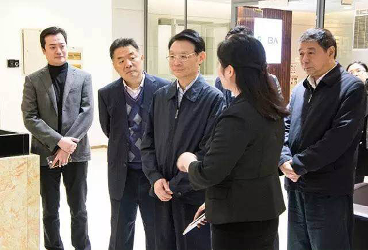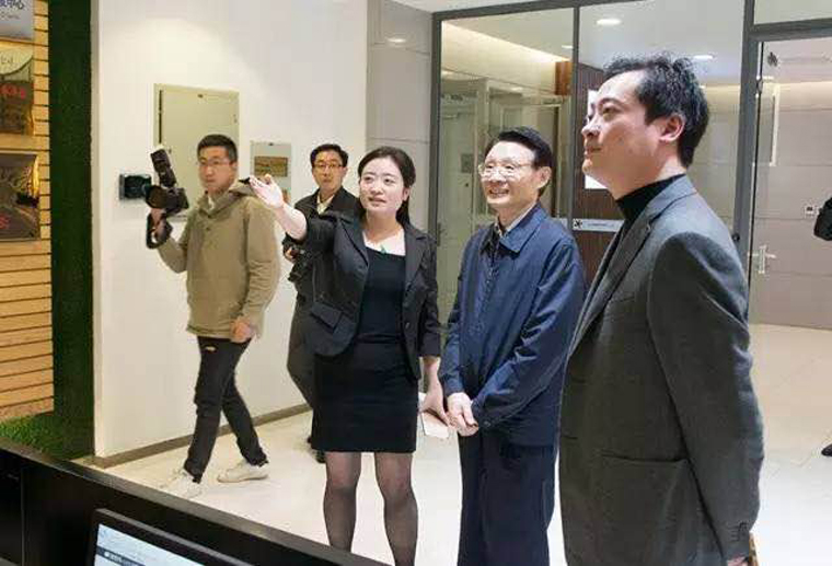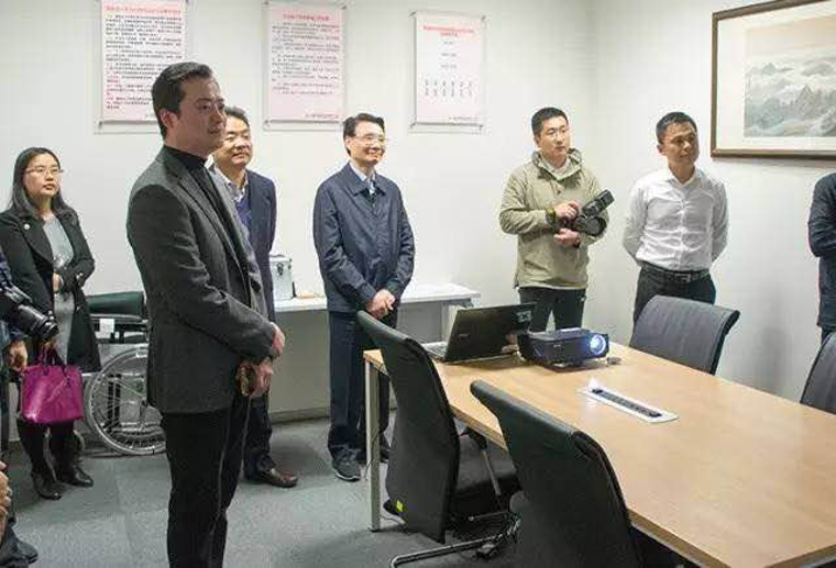 江蘇省紅十字會會長何權聆聽瑞貝科技負責人介紹企業情況
