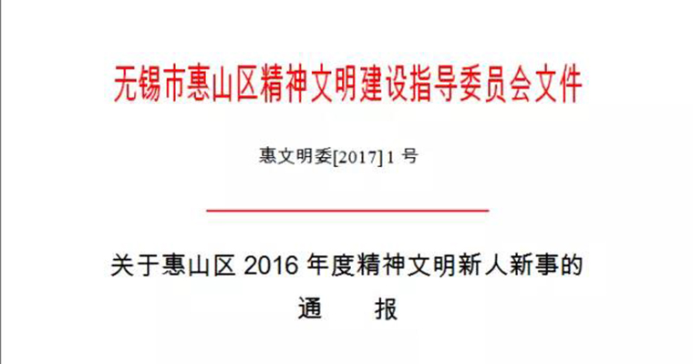 近日,惠山區文明委對“2016年度區精神文明新人新事評選”結果進行了通報,江蘇新瑞貝科技股份有限公司(以下簡稱“瑞貝科技”股票代碼:834570)董事長儲平光榮當選。