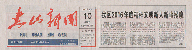 本次評選是惠山區文明委全面貫徹黨中央精神,為大力提升市民文明素質,褒揚先進、弘揚正氣、倡樹新風,在全社會形成崇德向善、見賢思齊的良好氛圍,凝聚同心同德、團結奮進的精神力量所開展的評選活動,全區共評選出“精神文明新人新事” 10人,瑞貝科技董事長儲平以“誠信創業、愛心奉獻的青年企業家”光榮當選。